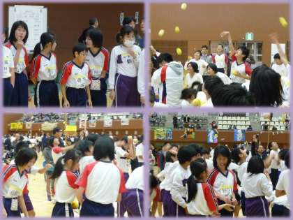 玉入れ競技のようすです。本校は,黄色組で出場しました。結果は,3位でした。でも,とても楽しそうでした。