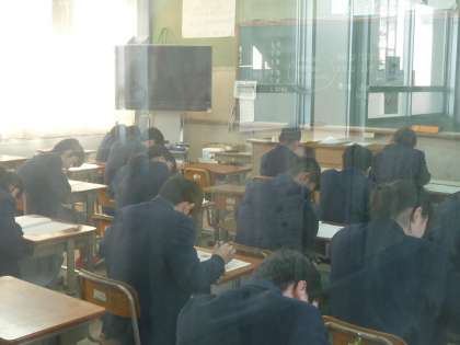 本日,1・2年生の「学習確認プログラム」があり,各学年,国語・社会・数学・理科・英語の5教科を実施しました。みんな,真剣な面持ちで取組んでいました。