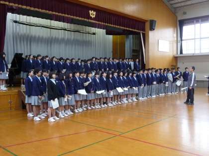 合唱は,男女のハーモニーがきれいでした。当日は,すばらしいものになると思います。3年生を感動させられるよう,これから少しずつ練習していきましょう。
