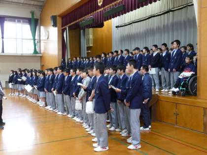 3月13日に行われる「三年生を送る会」の練習が始まっています。本日,6限には,2年生全員が体育館に集まって,群読や合唱の練習をしていました。
