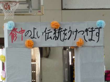 手作りの「アーチ(入退場門)」です。 立派にできていました。