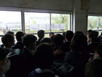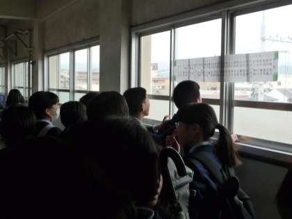 新2年生のクラス発表は,北校舎の教室前の窓ガラスに張り出されました。