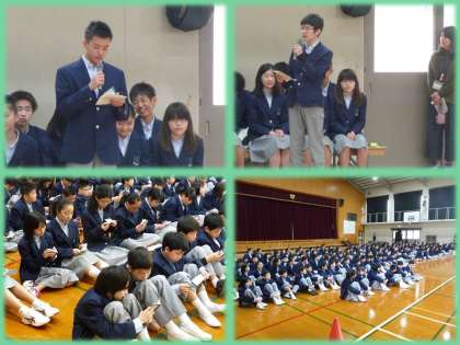 生徒会執行部の自己紹介,そして,生徒手帳の説明をしました。