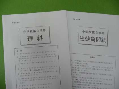 今年度は,国語A・B,数学A・Bに理科が加わりました。最後に,生徒質問紙に答えて調査は終了しました。