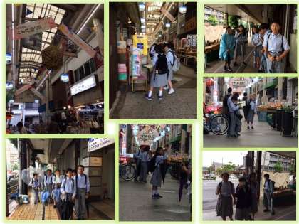 出町商店街での班別研修のようすです。