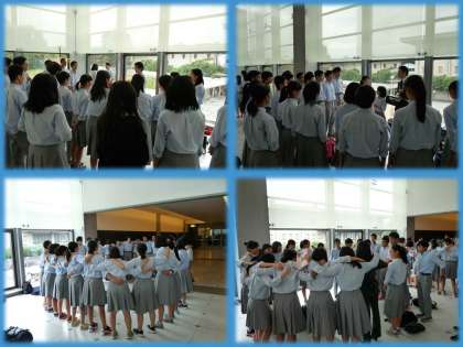 昼食後,午後の部の3年生が最後の練習をしている様子です。円陣を組んで,気合を入れて,歌っているクラスもありました。