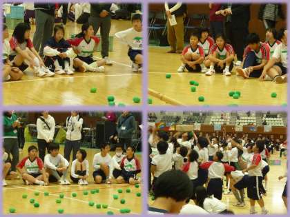 団体種目「玉入れ」の様子です。緑チームは,2位でした。惜しかったですね。