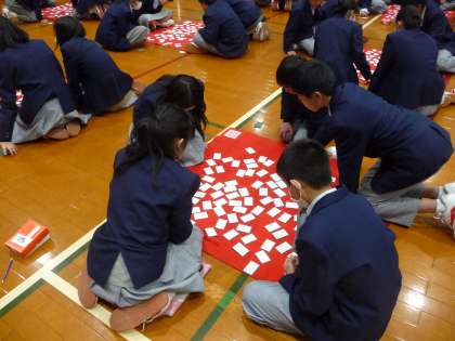 結果は,学級の取り札枚数の平均で,多い方から,1位・2位まで表彰される予定です。楽しみにしていて下さい。