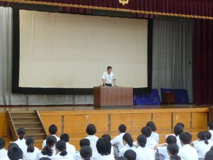 さあ,明日から夏休みです。もう,夏季大会は始まっています。勝ち進んでいる部活動,そして,明日が試合の部活動もあります。悔いの無いよう,目標を持って,全力で思いっきり戦ってきてください。校長先生も,教頭先生と手分けをして,都合のつく限り,応援に行きたいと思っています。がんばってください。