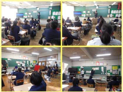 11月21日6限に,1年4組・2年3組・3年3組・9組において,「道徳」の研究授業をおこないました。今年度,修学院第二小学校と修学院中学校が,「しなやかな道徳」教育研究の指定を受けているための実践・研究の一つとして,修学院第二小学校の先生方や教育委員会の指導主事の先生にも参観していただき,その後,研究協議をおこないました。小中9年間を見通し継続した効果的な指導や取組をすすめるための有意義な情報交換ができました。