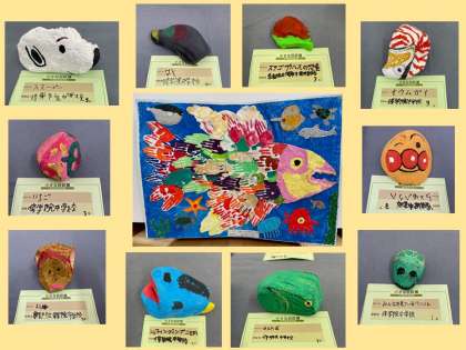 第43回 京都市小・中学校育成学級等大合同作品展「小さな巨匠展」が2月4日(木)から2月7日(日)まで京都市美術館別館で行われていました。この作品展は,作品づくりを通して子どもたちの豊かな心を育て,学力の向上に資するとともに,作品鑑賞を通して,障害のある子どもの教育への市民の理解・認識を深め,総合育成支援教育の一層の振興を図ることを目指しています。本校の育成学級生徒の皆さんの共同作品をはじめ,一人ずつ制作したストーンアートを展示しました。一生懸命に取り組んだ素晴らしい作品でした。
