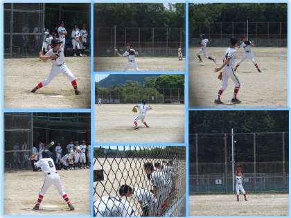 7月11日(日)に,勧修寺公園野球場にて、野球部の夏季大会1回戦がおこなわれました。蜂ヶ岡中学校と対戦し,攻守とも粘り強く自分たちの力を発揮し,最後には得点をしましたが,残念ながら敗戦しました。でも,ピンチの時の声かけや各選手への声援など,励まし合いながら試合にのぞんでいました。