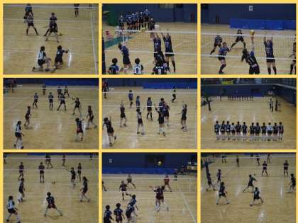 本日,第74回京都府中学校総合体育大会バレーボールの部の予選グループ戦が大山崎町体育館にておこなわれました。本校は,網野中学校と南城陽中学校と対戦し,緊張感もあったと思いますが,2試合ともミスもあり,序盤から相手のペースでリードをされましたが,中盤から終盤に逆転をし,何とか2試合とも2セット連取して,明日の決勝トーナメントに進出できました。明日の準決勝に勝利すれば,近畿大会に出場することができます。集中して今までの練習の成果を発揮し,勝利を目指して下さい。