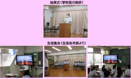 本日より2学期がスタートしました。感染防止対策により,多目的室からリモートでの始業式をおこないました。始業式前には,夏季休業期間中におこなわれた部活動の伝達表彰をおこない,それぞれ活躍した団体・個人に対して全校生徒から拍手で讃えました。続いて,始業式をおこない,2学期以降もより一層の感染防止対策を講じながら,学校行事や学習に向かって取り組んでいくことなどを学校長が話されました。その後,生徒会本部により,生徒集会がおこなわれました。2限からは英語テストや学活・掃除・総合の時間に取り組みました。明日から6時間授業です。体調を整え,早く学校生活のリズムを取り戻しましょう。
