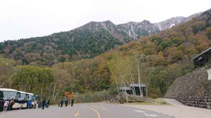 予定より少し早く扇沢駅に到着しました。これから2グループに分かれて電気バスに乗り換えて、黒部ダムに向かいます。道中のバス内では、寝不足かな?多くの生徒が寝ていました。曇り、少し日差しが出てきましたが、標高約1400mですので、さすがに寒いです。