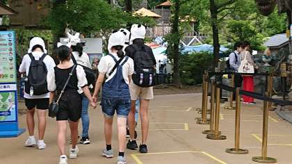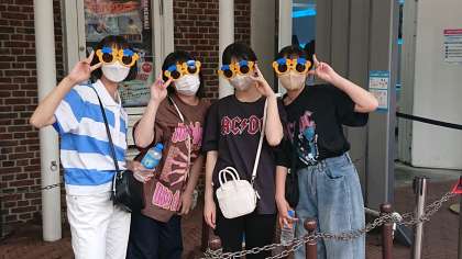 VR体験アトラクションやかぶりもの、サングラスを着用して楽しんでいます。この後も閉園まで楽しみます。本日のHPアップは終了します。続きは明日に掲載させていただきます。