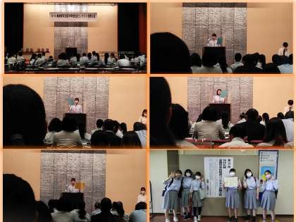 7月10(日)に京都アスニーにて,第39回 NHK杯全国中学校放送コンテスト京都大会がおこなわれ,人数制限があり,アナウンス部門2名,朗読部門2名の計4名が出場しました。緊張したと思いますが,どの生徒も練習の成果を発揮した発表であり,よく頑張りました。アナウンス部門で,3年生Mさんが,審査員特別賞を受賞しました。おめでとうございます。