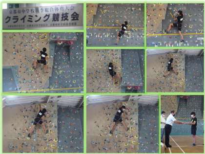 本日,ワンダーフォーゲル部の夏季クライミング競技会決勝が原谷の「やまびこくらぶ」でおこなわれました。昨年度に引き続き,今年度も感染対策として,練習会や予選会を各校毎の分散形式とし,本日が決勝となり,本校の予選会通過者は,3年生男子1名だけでしたが,他校の選手と同着の見事第1位という素晴らしい結果でした。スピードを競うクライミングではなく,設定されたコースを自分で考えながら,手足や体のバランスをとりながら,制限時間内にゴールまで到達するという指の力や握力,脚力が必要な競技です。昨年度に続き,優勝という素晴らしい結果でした。おめでとうございます。