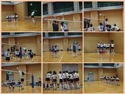 本日,第75回京都府中学校総合体育大会バレーボールの部の予選グループ戦が三段池公園総合体育館にておこなわれました。本校は,南陵中学校と南城陽中学校と対戦し,どちらの試合もリードされたり,逆転したり,手に汗を握る試合展開でしたが,2試合とも勝利し,予選リーグ1位として,明日の決勝トーナメントに進出できました。明日の準決勝に勝利すれば,近畿大会に出場することができます。できるだけミスをなくし,最後まで集中してチーム一丸となって勝利を目指しましょう。