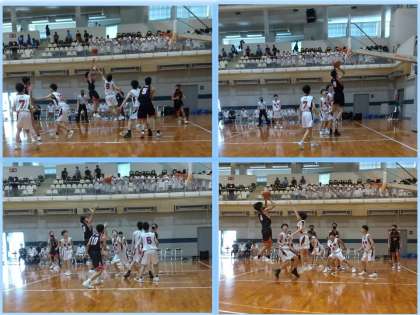 7月30日(土)に,第75回京都府中学校総合体育大会男子バスケット部の準決勝が亀岡運動公園体育館でおこなわれ,亀岡中学校と対戦しました。前半を終えて8点差のビハインドでしたが,粘り強く徐々に追い上げ,第4ピリオド残り数秒でついに同点に追いつきました。しかしながら,フリースローを決められ,惜しくも負けてしまいました。最後まであきらめず,素晴らしいプレーを見せてくれました。本当に残念ではありますが,よく頑張ったと思います。3年生の選手の皆さん,お疲れ様でした。応援ありがとうございました。