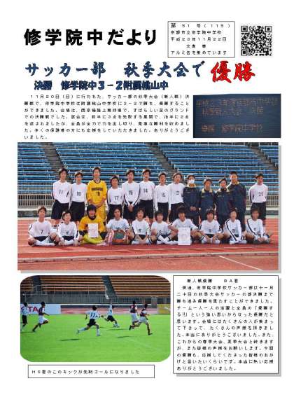 修学院中だより平成23年51号です。