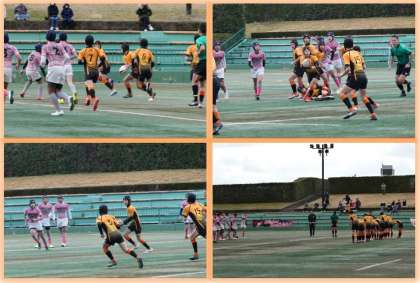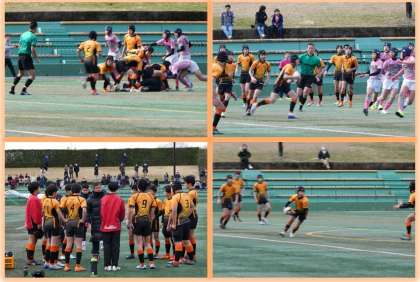 2月25日(土)に、ラグビー部の新人大会シード決定戦が宝ヶ池公園球技場にておこなわれました。先週に第3位となりましたが、同じく第3位となった四条中学校との春季大会に向けてのシード決定戦でした。前半から我慢の時間が多く、粘り強いディフェンスで7対10の接戦でハーフタイムを終え、後半は自分たちのラグビーを展開しようとしましたが、思うようなプレーや練習の成果が発揮できず、残念ながら勝利することができませんでした。春季大会に向けて、チームの課題の克服や個人スキルの向上など、これからの練習に取り組み、上位を目指して頑張ってください。予選リーグから決勝トーナメントへのたくさんの応援ありがとうございました。これからも本校ラググー部をよろしくお願いします。