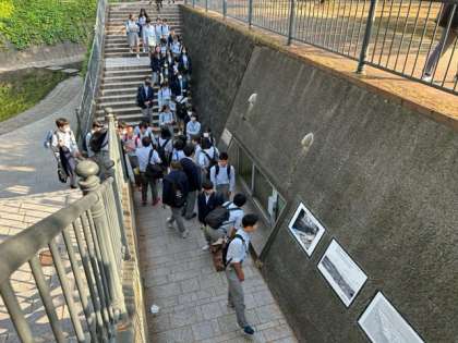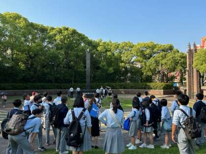 原爆資料館の見学後、爆心地周辺を見学しています。