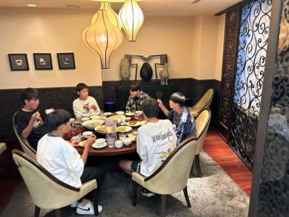 昨日の夕食の様子です。長崎市内班別研修も全員無事に時間通りホテルに帰ってきました。昨日はペーロン体験、長崎市内班別研修で体力を使いましたので、しっかりと夕食をとっている生徒が多かったようです。暑い中の活動でしたのて、中には少し体調を崩している生徒がいます。本日に備えて、昨日の夜はゆっくりと時間を過ごしてもらいました。