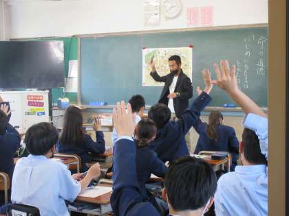 本日、6限に昨日の「命の道徳」1時間目を受けて、各学級で道徳の内容項目の視点の一つである「主として生命や自然、崇高なものとの関わりに関すること」について題材にした資料を活用し、各学年が工夫しながら道徳の授業をおこないました。どのクラスも自分ごととして、一人一人が主体的に考える機会となったと思います。