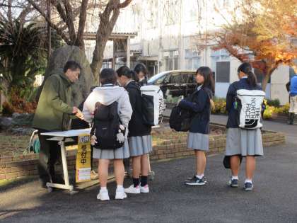 本日、午前8時から始業までに、学校運営協議会スタディ部会の方々とPTAボランティアによる「第3回漢字検定」の受検申込受付がありました。受検の申込をする生徒(保護者等も受検可)は明日も登校時に受付があります。実施日時は、本校にて1月26日(金)15:45〜16:45(15:30集合)です。実施場所は、後日ご連絡させていただきます。学校運営協議会スタディ部会の方々、PTAボランティア方々、早朝よりありがとうございます。
