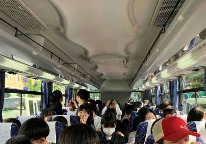 無事にバスに乗り込みました。楽しそうですね。京都駅まではあっという間ですが、次は新幹線に乗ります。素早く乗れるように練習をしました。3年生の皆さん、気を付けていってらっしゃい。