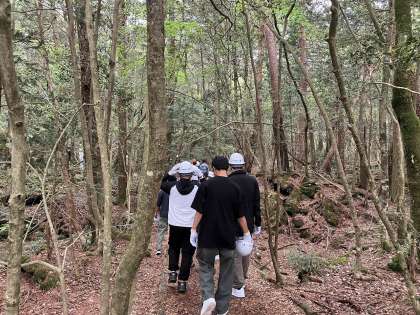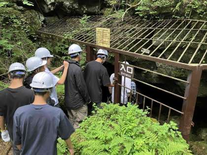 洞窟探検の様子が送られてきました。本格的な洞窟に突入する様子、写真を見ているだけでドキドキしますね。樹海を歩きネイチャー体験もしています。