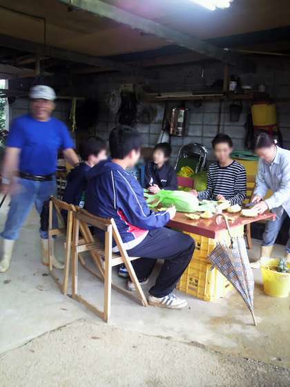 農業体験でパイナップルを収穫し、食べています。