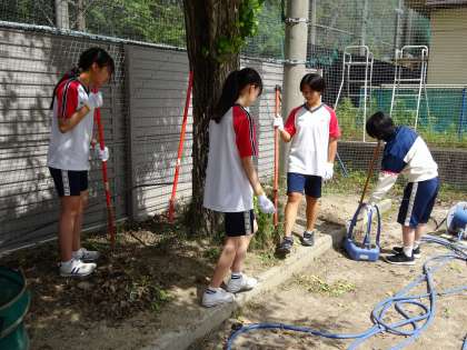 本校管理用務員さんの「日ごろ自分たちが使っている場所がどのように整備・管理されているかを伝えたい」思いを受け取って頑張ってくれています。