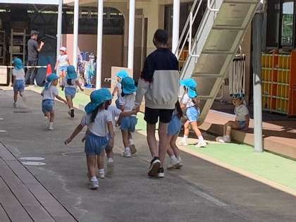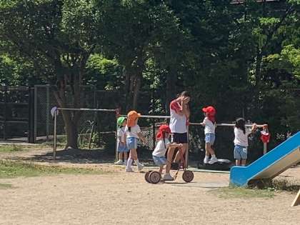午後の活動、園児さんはとても元気です。一緒に遊びを楽しんでいます。