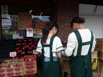 昨日トマト農家さんでとれたてのトマトを仕入れてきました。今日は販売をします。