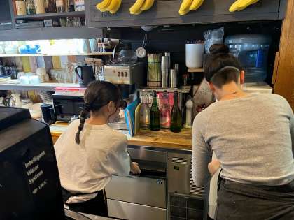 オシャレなカフェで素敵な店員さん2人が体験させていただいています!