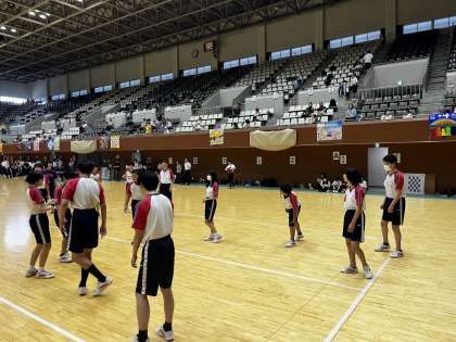 優勝をすることはできませんでしたが体育の授業で練習してきたことを本番で発揮することができました。強いチームに対しても壁にぶつかりそうになるまで必死にボールを追いかけて粘り強くラリーをつなげ1点でも多く取ろうという気持ちがプレーに見られていました。毎試合後、自分たちで作戦を考えており最後の試合では逆転勝利することができました。他校の生徒たちと仲良く話している姿が見られ、試合がないときは他校の応援をしていました。