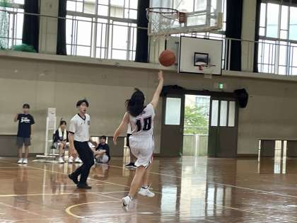 夏休みに入り、さっそく夏季大会の試合が各地で行われています。修学院中学校を会場に女子バスケットボール部が2回戦にのぞんでいます。相手は京都橘中学校、前半は74対4で折り返しました。修学院らしいスピードあるオフェンスと、足を活かした強固なディフェンスでどんどん得点を重ねています。ホームでの試合とあって多くの保護者の皆様が応援に来てくださっていました。女子バスケットボール部の皆さんの活躍が今後も期待されます。頑張ってください!