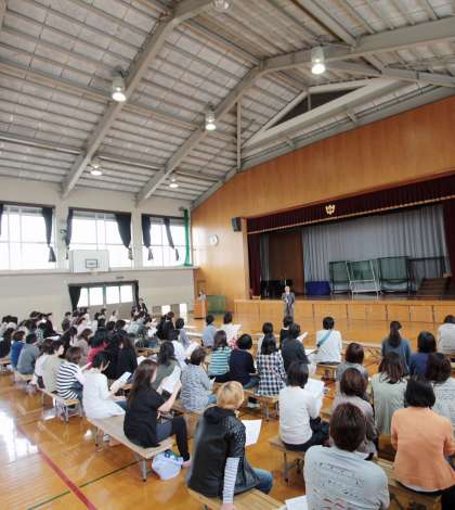 午後2時から体育館で、1年生の保護者説明会がありました。