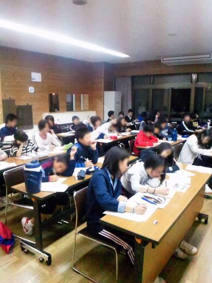 夕食後、クラスごとに分かれて学級目標会議をしました。