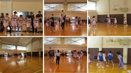 男子バスケットの対戦相手は秋の新人戦で準優勝の西賀茂中学校。試合序盤から気合いの入った修学院が攻め立て、前半は大きくリードして試合を折り返しました。後半は、エンジンのかかりはじめた西賀茂に徐々に追いつかれ逆転を許してしまいます。しかし、ここから驚異的な粘りを見せ、試合の終盤は一進一退。最後は相手のファールもあり、フリースローで再逆転。難敵を撃破しました。