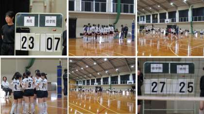 女子バレー部は1回戦、西院中学との対戦です。第1セットは流れに乗れず、簡単に1セット目を取られてしまいました。続く2セット目は修学院が徐々に自力を発揮。1度はリードしますが追いつかれ1点ずつの取り合いに。最後はデュースの末2セット目をゲット。3セット目はお互い意地のぶつかりあいでしたが、試合の終盤、修学院に7連続得点があり、逆転勝利しました。