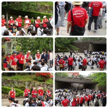 原爆資料館前に到着しました。こから班別研修となり、現地のさるくガイドさんに原爆資料館を案内してもらいます。※「さるく」とは、長崎弁で「ぶらぶら歩く」という意味です。長崎市では、まち歩き観光の合言葉として使われています。長崎さるく博や長崎さるく団体を通じて、様々なまち歩きツアーが開催されています。
