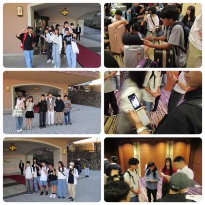 ロビーで先生方から班ごとに携帯電話を受け取ります。
