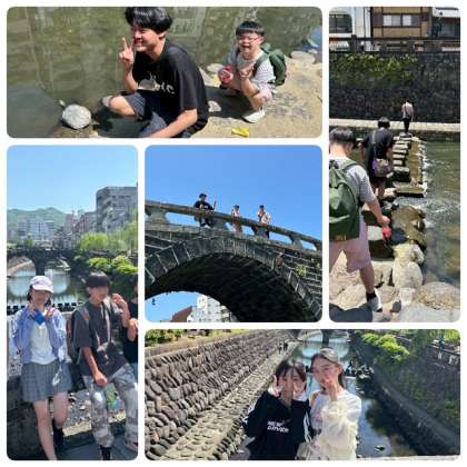長崎市の眼鏡橋は現在最古の石型アーチの橋です。気温が上がってきたので、水辺は気持ちが良いようです。