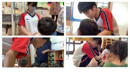 保育園で各年齢の部屋に分かれて活動しています。園児と一緒になって遊んだり、親のように優しく抱っこしたり、四者四様の関わり方で頑張っています。