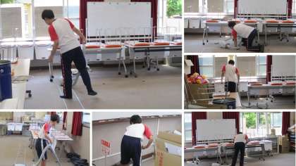 学校での作業の様子です。急遽学校への登校になったメンバーですが、しっかりと掃除をしてくれました。普段できないところがぴかぴかに!お疲れさまでした。