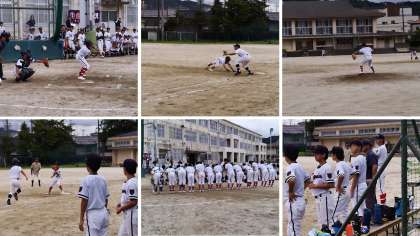 9月13日(土)野球部の秋季新人大会予選リーグが行われました。修学院中学はここまで2勝しています。3戦目の相手は東山中学。修学院が後攻で試合が始まりました。一回裏 長打で2点先取し、いい試合の入り方をしたのですが、5回表に逆転を許し、3−5で最終回を迎えました。粘りの修学院は相手の四球からランナーが出塁。相手の失策もあり、最後は決勝打が出て、7対5と逆転勝利を収めました。
