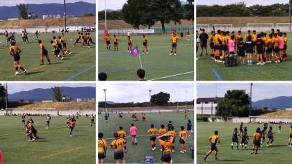 9月27日(土)ラグビー部の夏季大会決勝トーナメントが始まりました。初戦の相手は勧修中と嘉楽中の合同チーム。修学院は試合開始4分に先制トライを決め、試合の流れを持っていきます。そして次々にトライを決め、前半を大きくリードして折り返します。後半も開始早々から主導権を握り、相手に流れを持っていかせませんでした。結果56−0の完勝で1回戦を突破しました。